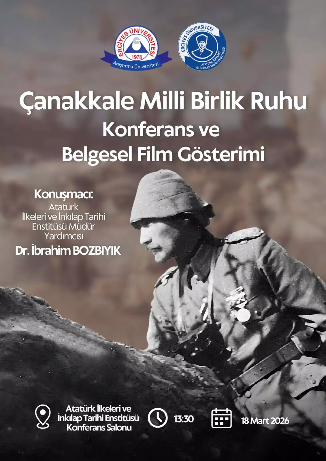 Enstitümüz bünyesinde "Çanakkale Milli Birlik Ruhu konulu konferans ve Belgesel Film gösterimi" Atatürk İlkeleri ve İnkılap Tarihi Enstitüsü Konferans Salonunda gerçekleştirilmiştir. 18.03.2026